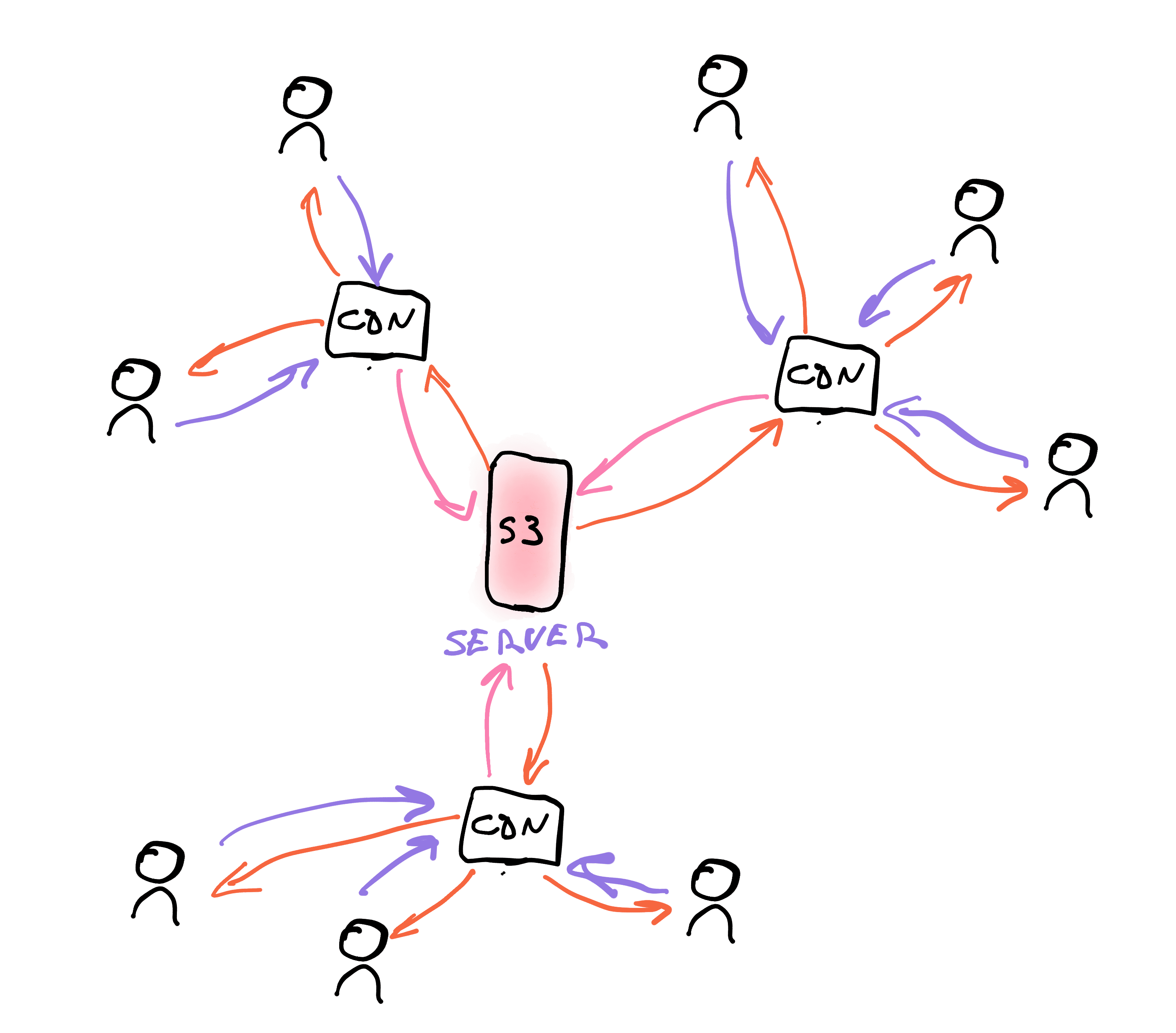 Now when a browser requests a file, the URL resolves to the nearest server. Request goes to that server and if the file is there, it's served. If there's no file, the CDN goes to your original source, caches the file, and then sends it back to the user.