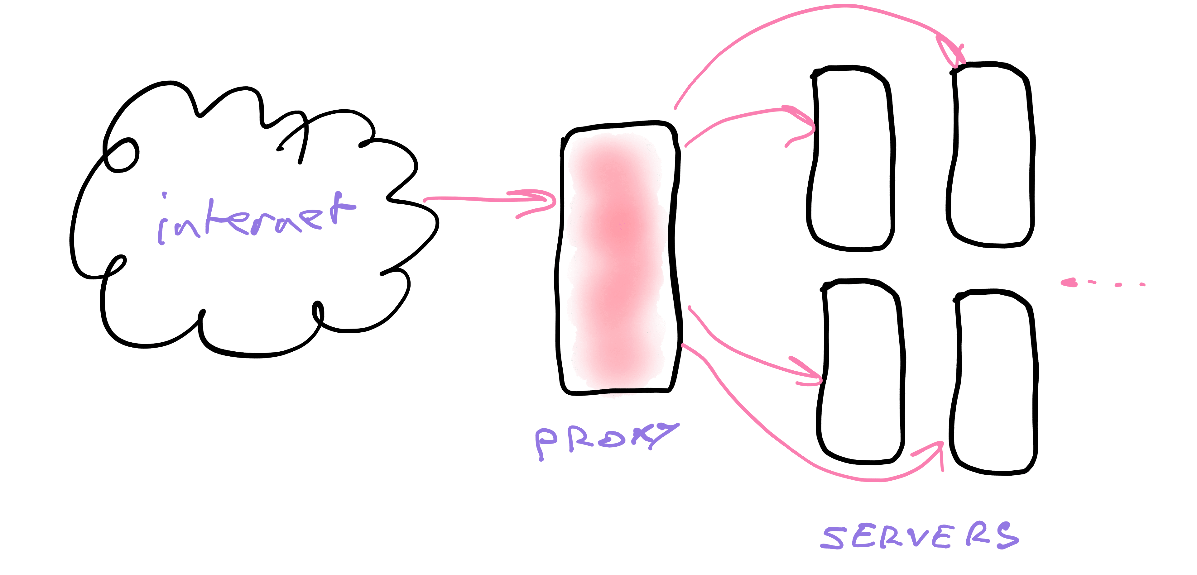 Requests come from the wild internet into the proxy. The proxy then decides:
